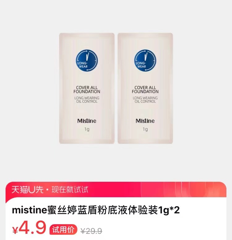 mistine蜜丝汀蓝盾粉底液1g*2 符合4.9元