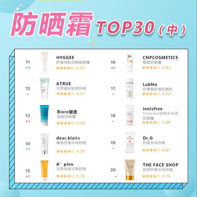 韩国网友投票选出的“春季爱用防晒霜top30”