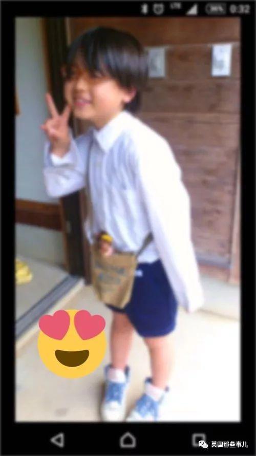 下面是井手上漠在读小学低年级时从外面散步回来,妈妈帮忙拍的照片,