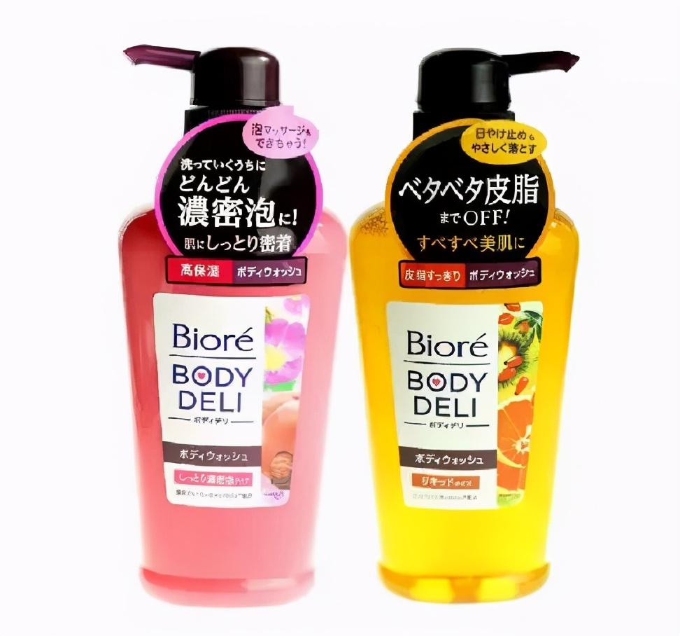 有2种不同质地,都含有新鲜水果和植物成分,有深层清洁肌肤的功效,适合用来洗净全身的防晒霜,又是保湿型沐浴露,洗后干净又不紧绷。粉色蜜桃玫瑰香型,含有牛奶成分,泡沫丰富。能有效锁住皮肤水分,保持滋润,适合干燥的皮肤。黄色的柑橘香型,呈透明液体状,能带给肌肤持久保湿,容易洗干净还不假滑。