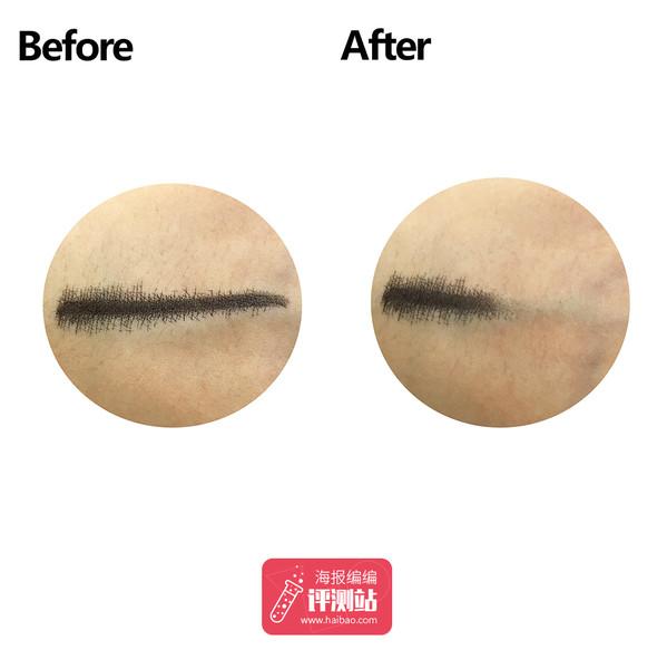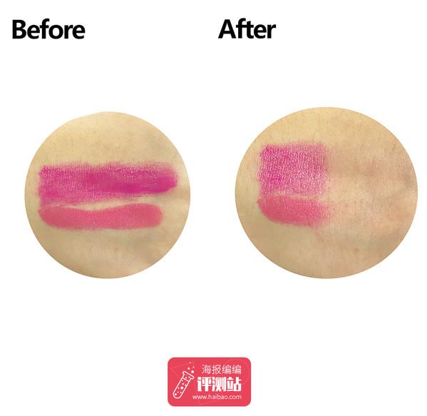 评测方法:在手背上涂抹防水型眼线笔和唇膏,然后用卸妆水擦拭。