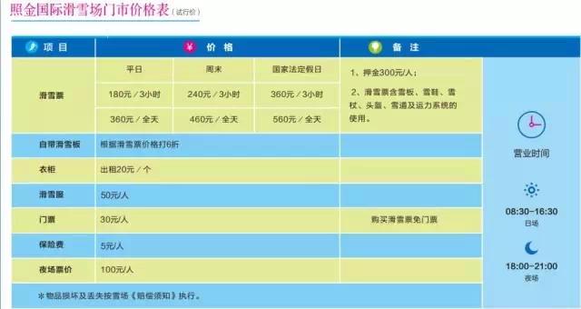 平日不限时滑雪套票:360元/人 优惠票价:138元/人
