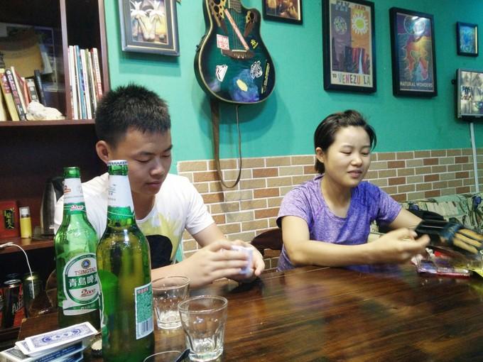 (上图)在客栈晚上有时候不知道玩什么,所以就打牌了,打升级。在客栈总共打了3盘,和思密达一组,总赢2输1,奖励是收货一瓶免费的饮料。打完牌,大伙发现我打牌还是满厉害的。主要是他们几个不是很会。