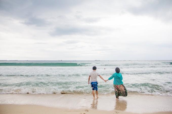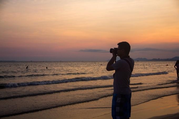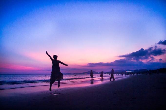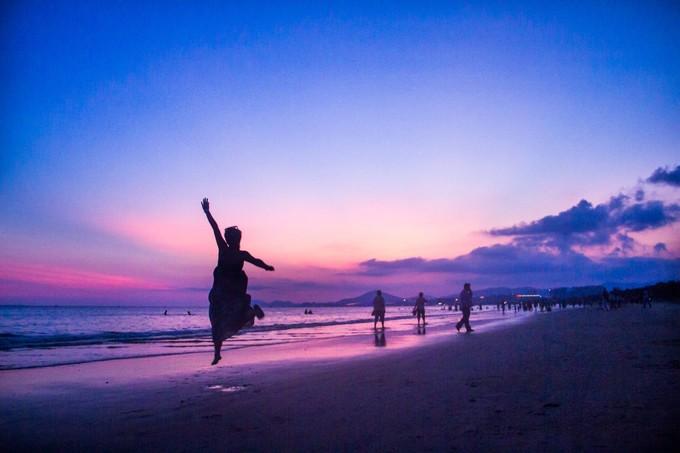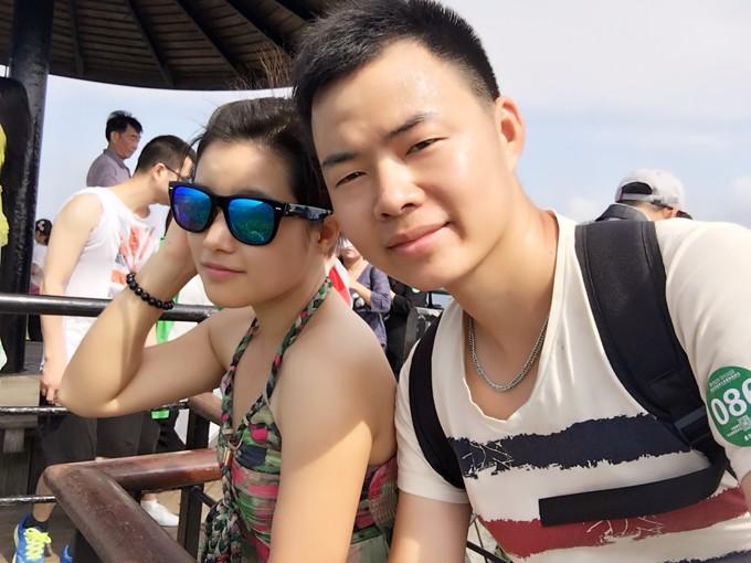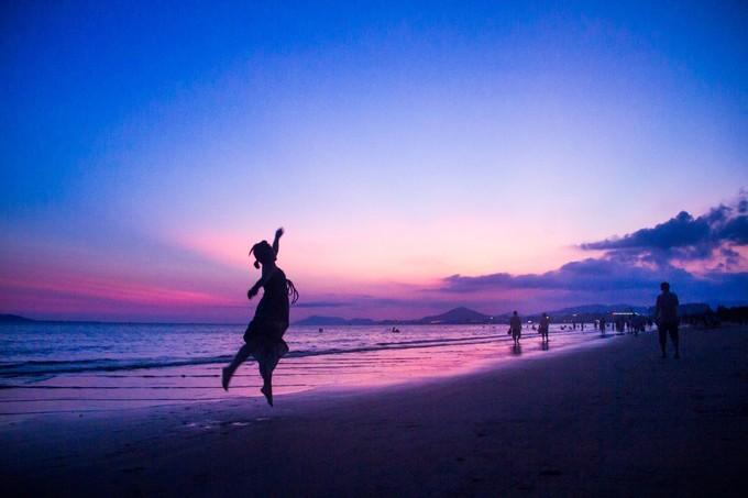 (上图)李给妹子拍了一系列的照片。背景真的美。长长的沙滩,每个人享受着美景带给自己的幸福瞬间。