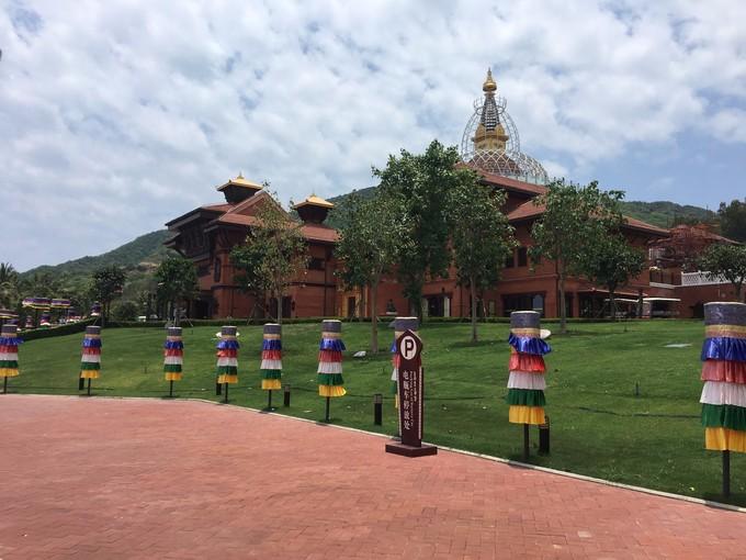 (上图)思密达在三亚想去的就是看一下海上观音,李对看观音兴趣不大,所以今天就我们三个一起来,来的时候,是在一个旅行社报名的,苗当时只是问了一下对方大概多少钱,问完之后,对方回答后还和我们聊了几天,给我们印象深刻,当晚上决定了再去找他时,对方竟然一看见我们就知道我们要去南山海上观音。真像个会做生意的,感觉有种人就是给人一种信任感,好神奇。这里是入口,导游是个年轻的姑娘,今天是她带着大家一起玩。入门后,导游会一直跟着大家,当进门后,会有另一位解说员给大家解说许多我们看到的东西,比如建筑,看到的彩旗,属相等,记得解说员是一位帅气的小伙子,口才相当好,也很幽默。