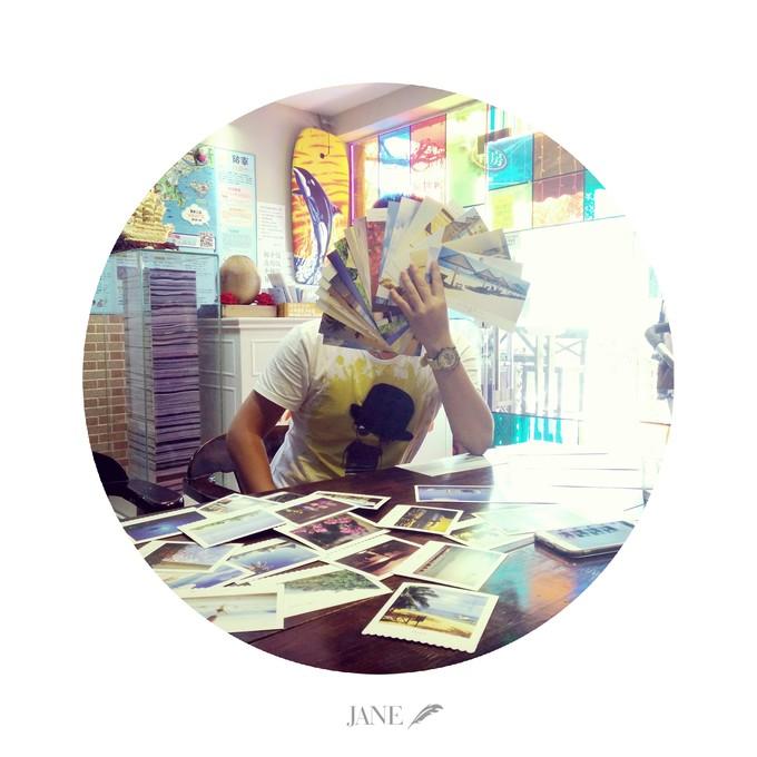 (上图)这是在写明信片。客栈里面有明信片卖。写明信片几乎快写了一下午。有时候,觉得一个人收到一张明信片应该会有点小开心,所以写的蛮多,写完后,和小伙伴一起去到邮局买邮票,邮局的人说邮票卖完了。可以到货的时候再寄,所以付完钱,就把明信片给到了对方。