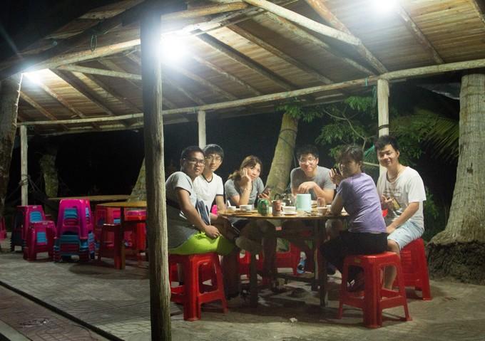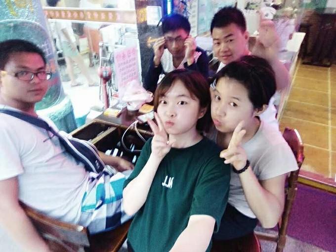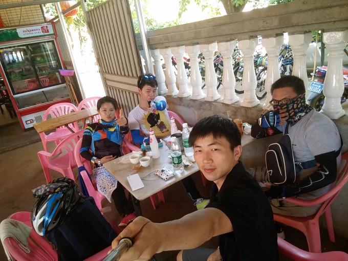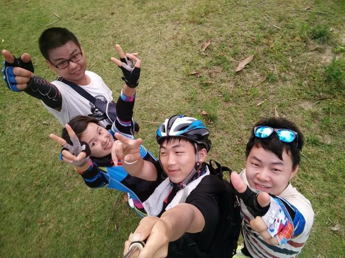(上图)中间的两位是一组小伙伴。左边的妹子叫卷卷,右边是小史,他们来自同一个地方,福建平潭。两位真心好玩,妹子听见我们讲我们怎么玩的,听完她一扭头就对着小史抱怨起来:就知道一个劲的踩车,你看他们还吃西瓜。小史听完就有点受不住了,还好两位关系蛮好的。饭桌上,记得自己无心说了一两句让小史有点尴尬的话,现在回想,真的不应该,好像是聊贵的运动是啥。