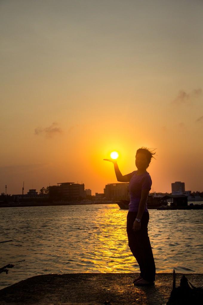 (上图)好想拥抱夕阳,让时间定格成一幅画。我能想象的美的风景,就是落日余晖,洒满了整个江面。小史很喜欢摄影,所以他给我们拍了好几张。想拉着他一起拍,小伙子挺害羞,没有入镜。