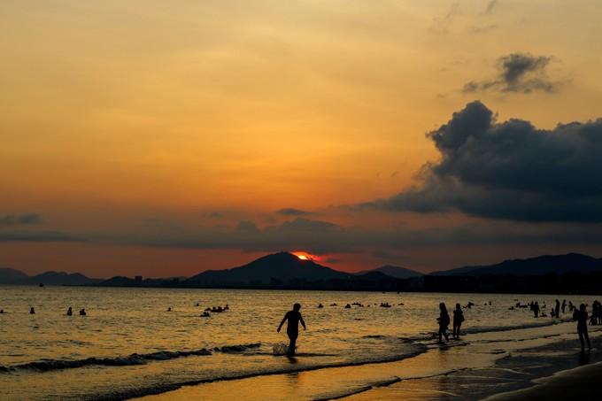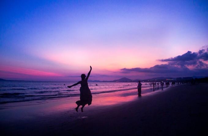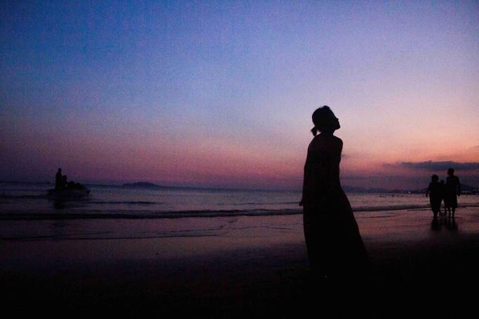 (上图)清晨,漫步在大东海的沙滩上。