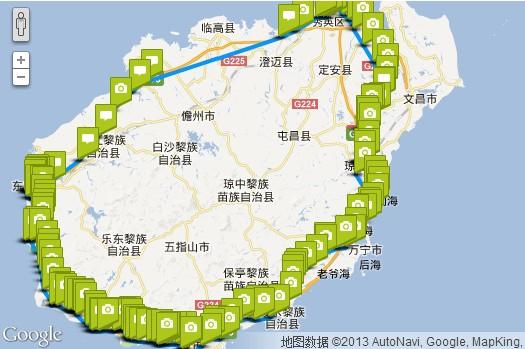 上图是我所经过的地方,海口至东方段没有其他地方密集,是因坐大巴走的高速。严格来讲,6天行程,骑行5天,搭车2小时,两小时的高速公路节约了两天天半250KM的骑行路程。