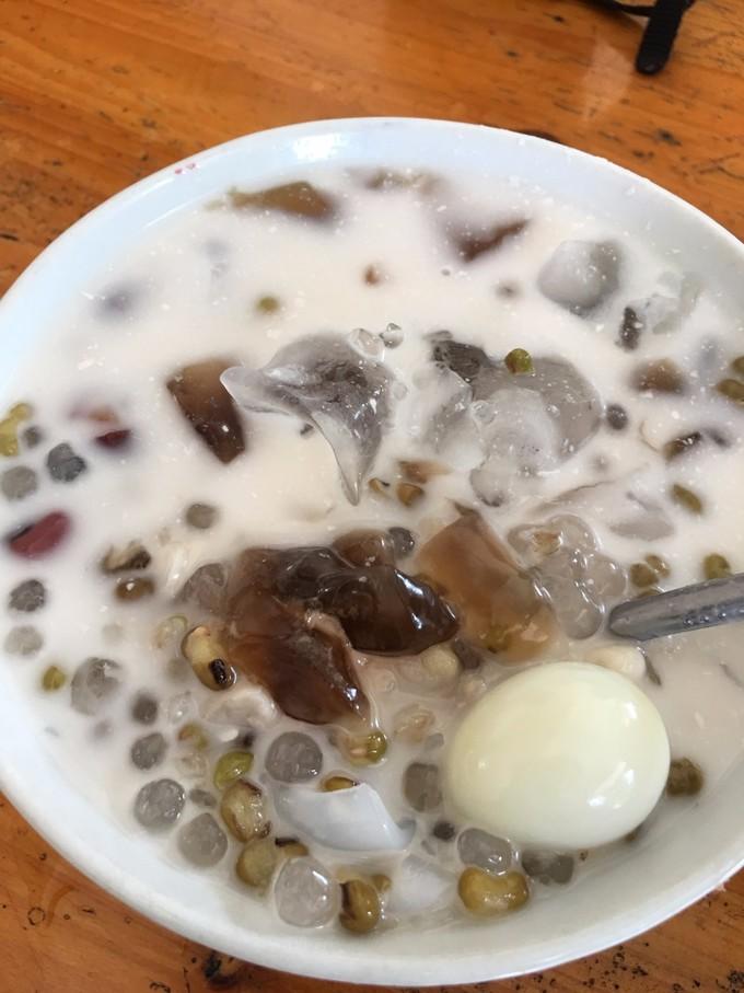 (上图)海南有名的清补凉。其中加了椰汁、凉粉、红枣、鹌鹑蛋、绿豆等,真的好喝。来之前,还以为清补凉就类似绿豆汤之类,没想到里面的料很多,加之有冰块,很解暑。