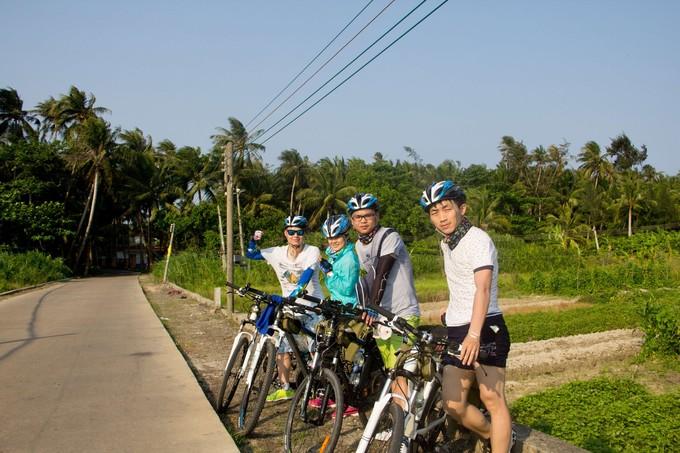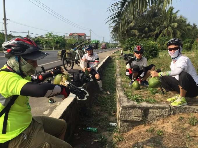 (上图)一起抱着椰子来一张。骑行的时候,真心的累啊,我觉得我真是弱,透露一下,骑东线大多数时候,我都是后一个,一般情况下都是三个大老爷们儿追前面的妹子,幸好妹子不会使用百度地图,需要一个人在前面带路,要是能看懂百度地图,没准早抛弃我们了。