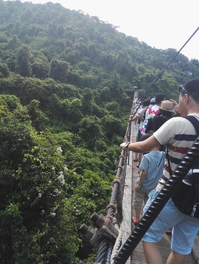 (上图)亚龙湾因为有《勿扰2》的取景,所以还比较有名,坐车上去,空气凉,天然的氧吧,这个是要过索桥,在旁边拍两张。