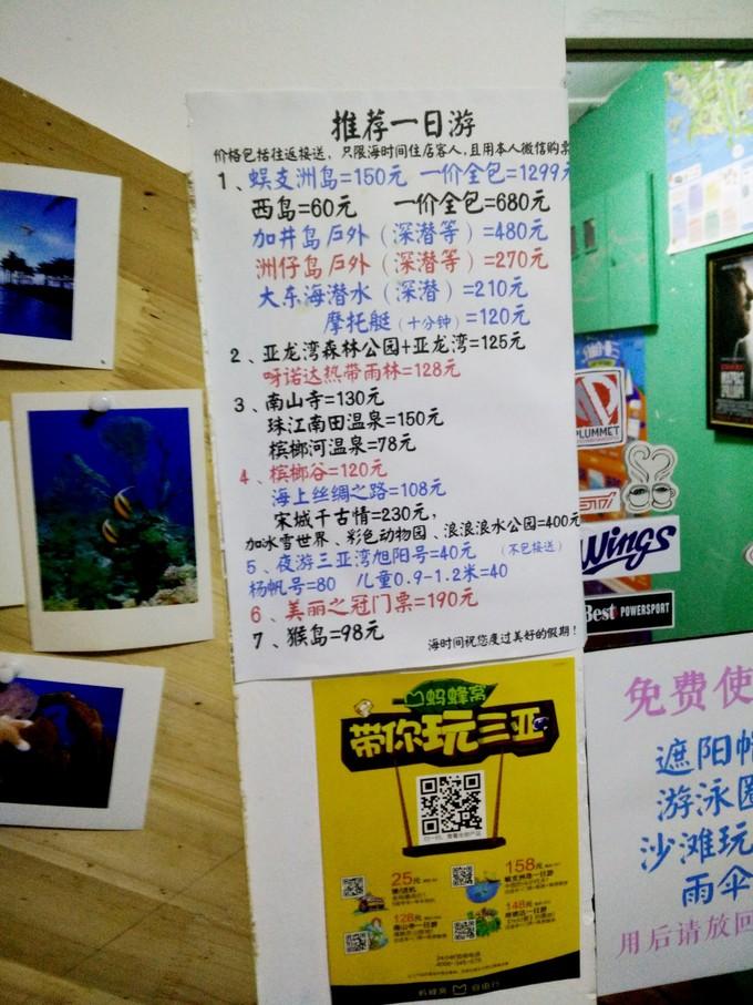 (上图)这是我们入住的客栈---海时间,是李从网上搜到的,看见客户评论很不错。这里离大东海就几分钟的路,比较适合穷游的人们。酒店还可以点餐,老板会弹吉他,还会唱歌,推荐一下。我们在三亚的这几天都是住在这里。这里地理位置也很好,能认识蛮多的人。有单间,也有床铺出租。印象中,在这住了两天后,来了一位大叔,喝了点酒,然后拉着我吹牛,说自己是特意被请来的医生,说大学毕业,高材生,各方面都好,可能他说的都是真的,但是我实在是听不下去,时时在找机会回房间,但是发现他说话的兴致很高,没有给我下凳子的机会。