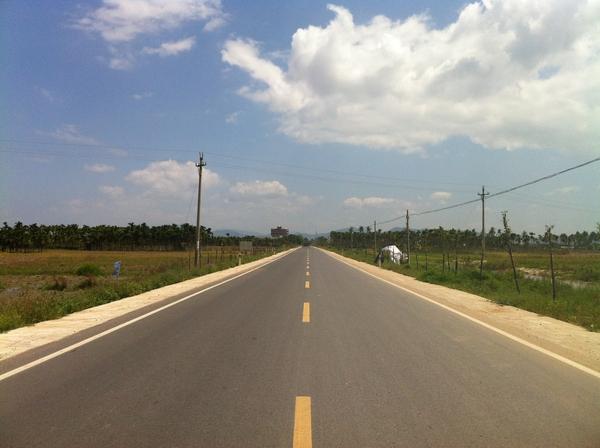 (上图)有时候看见前面连绵起伏的公路,心中都会涌现出一群草泥马。在今天的骑行中,记忆中经过一个很落后的小村庄,一排的一层的土房屋,外面都看不到一个人,只经过的时候看见里面只有老人和小孩。在路途上看见有牛站在马路上拉粑粑。看见许多较落后的景象,看到了许多人很少的地方,看到了许多的香蕉树,看到了许多的田庄。没来得及欣赏这些美景,脑海只是想到还有多少公里,我要坚持骑到驿站。记得自己骑行到一个小商店的时候,买了三只水,想趴在桌子上休息一下,刚入睡不久,因为主人要停车入库,被弄醒了,就没有再睡。