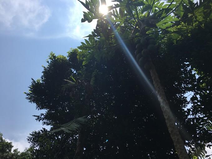 海南南北气候差异大,三亚干、热,海口湿、潮。尤其是陵水至兴隆之间,山相对较高,从三亚往北翻过山,顿时从阳光灿烂变到阴雨面面,前后真是分分秒之间的事。所以,衣服要穿透气排汗的,下雨赶紧把雨衣给套上。感冒可不是件小事。在这个山坡,前后是截然不同的两种天气。南边天晴,北边下雨。