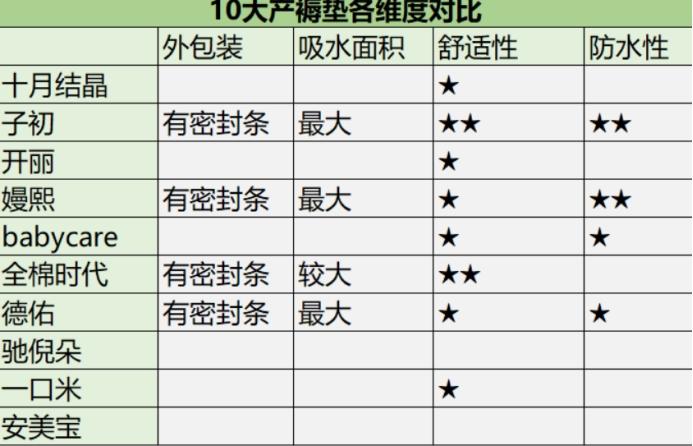 建议带大号(60*90)的,各个牌子护理垫对比如下图
