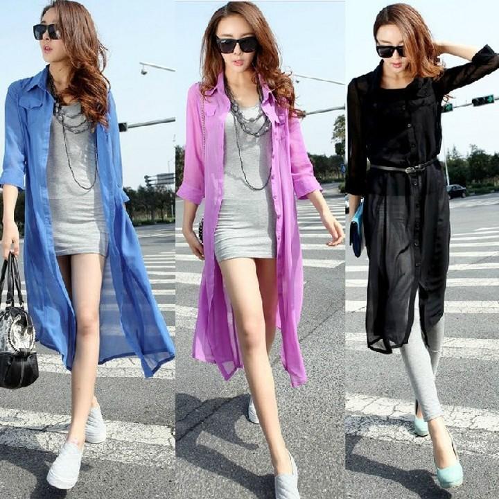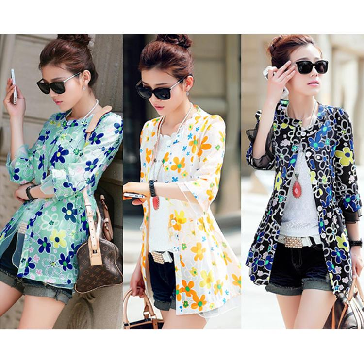16.2015夏季新款中长款雪纺防晒衣女大码超薄防晒服春防晒衫外套
