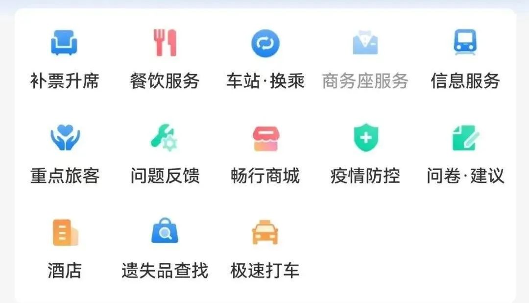 铁路畅行码具有补票升席、遗失品查找10大功能