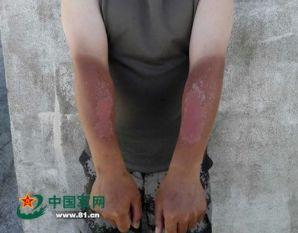 “这可都是晒后修复的功劳。” 孔班长哈哈一笑,讲起自己的“皮肤恢复历程”。前段时间,孔班长脖子上起了不少水疱,奇痒无比,太阳一晒,更加难受。他就拿出皮炎平擦了起来,没想到不仅没见好转,还有加重的趋势。“没办法,我只好去卫生队问医生。原来呀,我这是晒伤。医生让我每天训练完后用凉毛巾冷敷10-15分钟,再在晒伤处涂抹上芦荟胶或薄荷膏,同时口服阿司匹林和维生素C。他还告诉我,训练结束后不要用香皂洗澡或者澡巾搓澡,长期坚持,晒伤的皮肤自然就好了。”