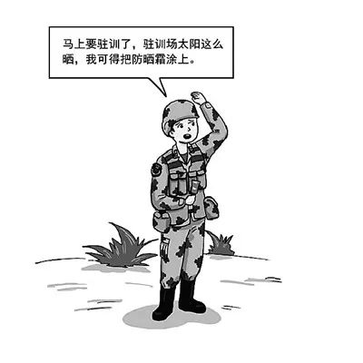 王排长刚说完,就有几名同志把着装整理了一下。王排长笑了笑,继续说道:“除了迷彩服,防晒霜就是皮肤的第二层防线,每天训练带出前,提前半小时在裸露的皮肤上涂上防晒霜,每隔2-3小时补涂一次,效果会更好。”