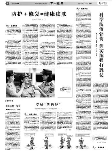 夏季官兵在户外训练时,总是“沐浴”在阳光下,容易发生皮肤晒伤。日照比较强的地区,还容易出现红斑、水肿甚至水疱。因此,防晒成为一个值得关注的话题。