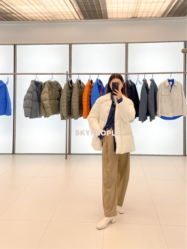 SKYPEOPLE全线产品均属精简设计风格,更有衬衫、西装、风衣等经典单品款式,让穿着者能低调融入城市职场生活。值得一提的是,SKYPEOPLE绝大部份的系列采用800蓬松度钻石白鹅绒,绒子量达90%,与国际一线相媲美,真正实现“暖”与“型”的结合。