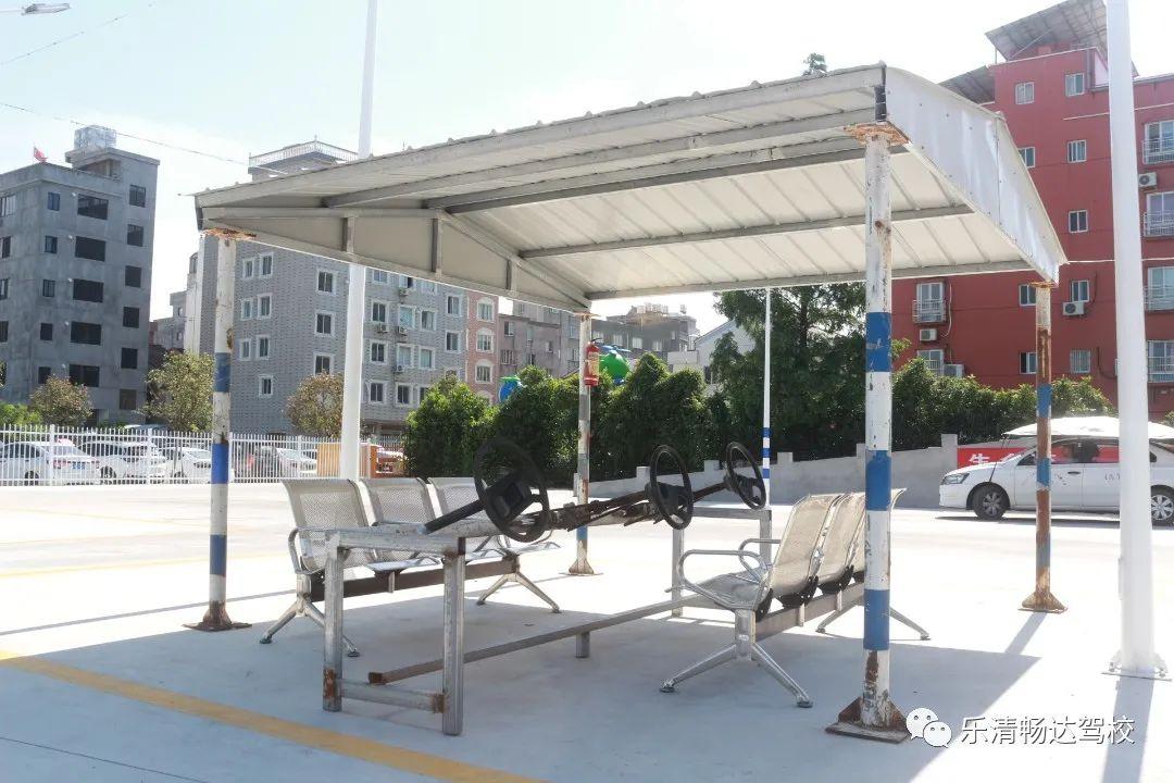 畅达驾校在训练场地内设置休息区,学员们学车间隙可在休息区乘凉。