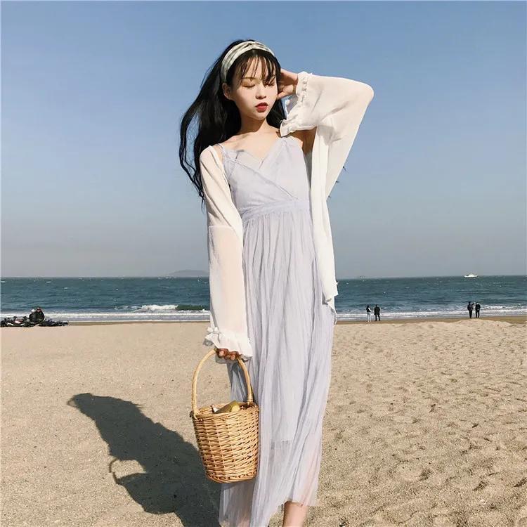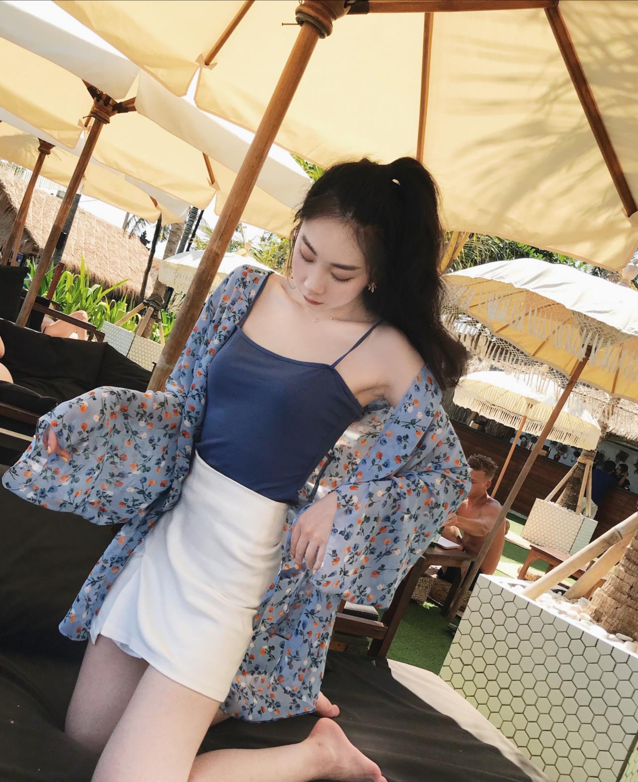 除了长裙外,短裙也是不错的选择,因为夏天炎热,短裙配上小吊带再来个碎花的防晒,有着很丰富的视觉看点了。
