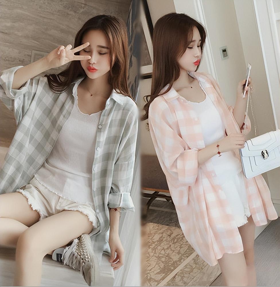 除了纯色的色调外,在防晒衣上来点格纹的点缀,也是不错的选择,比纯色的更加有殊死亮点,不会很单调。