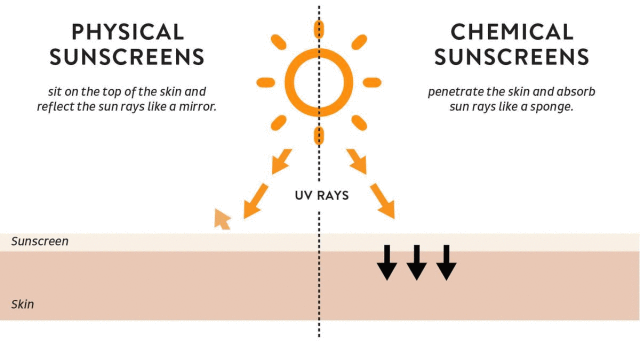 众所周知,防晒霜一般分为物理防晒和化学防晒两种主要的防晒方式。其中物理防晒一般指含有活性矿物质成分如二氧化钛 / titanium dioxide、氧化锌/ zinc oxide这些矿物质,利用矿物分子形成的保护层对紫外线进行反射、折射、散射来阻挡阳光的伤害;而化学防晒则通过化学物质将紫外线吸收分解掉。