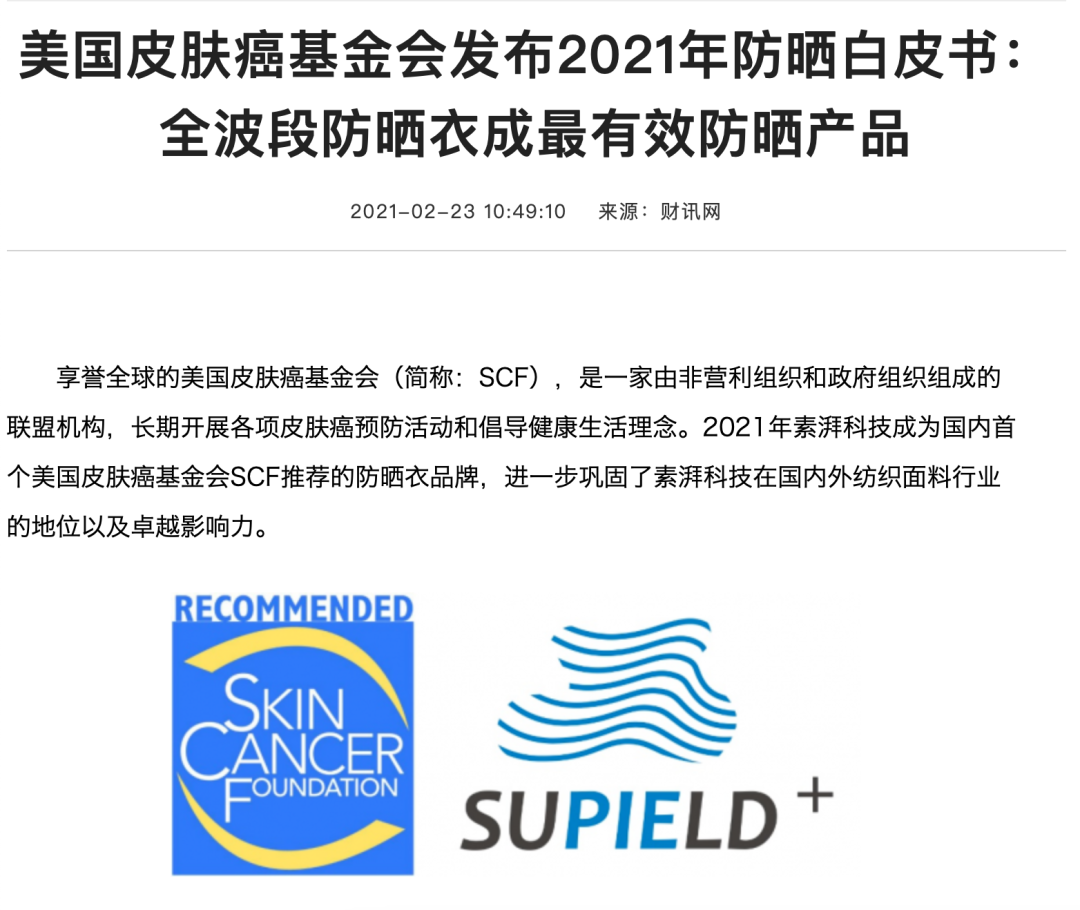 还成为了美国皮肤癌基金会推荐的防晒衣品牌。