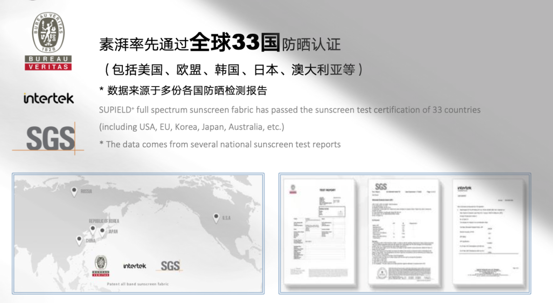 防晒指数 UPF600+,比国际标准还要高十几倍,怪不得能获得德国、日本、欧盟、澳大利亚等共33个的认证。