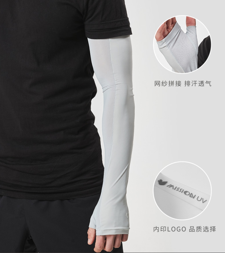 采用素湃自主研发的冰感面料,冰袖摸起来冰冰凉凉的,戴上不闷热。