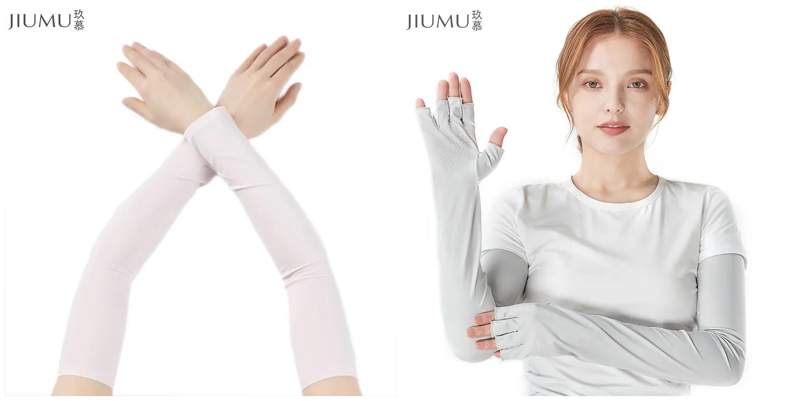 玖慕冰袖还贴心地推出了套指款,一根手指头都不允许被晒黑,这工作,做得真的到位。