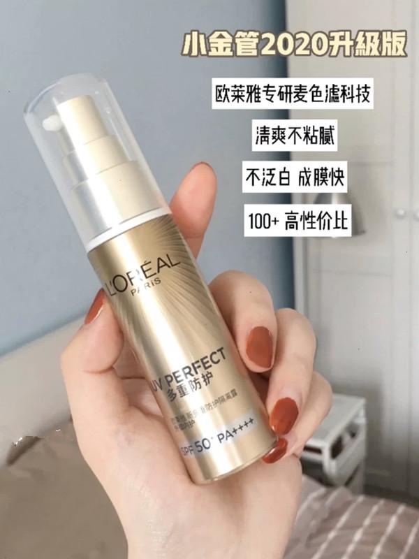 -欧莱雅小金管防晒欧莱雅防晒可以说是红遍全网,趁着势头欧莱雅更是出了它的升级版。首先重要的是它的防晒指数,SPF50+ PA++++,光是这个高强度的防晒标准,即使去沙滩晒太阳也完全没问题,更不用说只是日常使用。