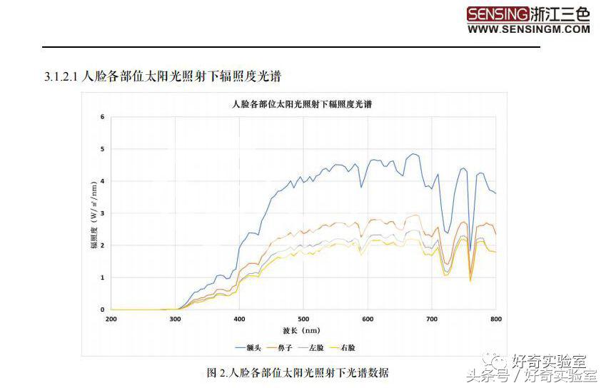 选取额头、鼻子、脸颊三个受太阳辐射比较大的区域