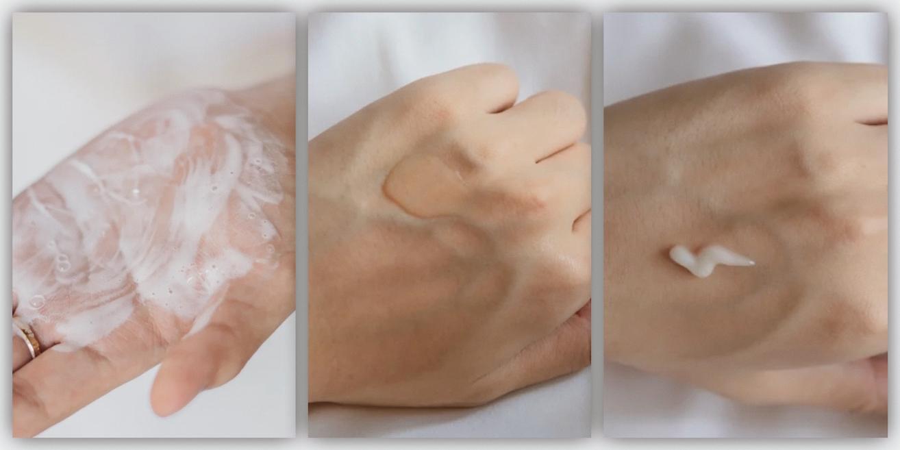 洁面是氨基酸配方,PH值接近人体,温和没话说,清洁力对干皮来说刚刚好。水乳主打补水保湿,质地很滋润,都是一抹遇热化水,吸收好,在秋冬也很能抗。