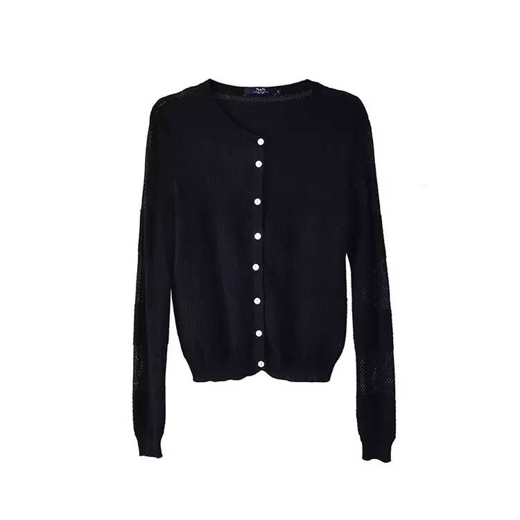 圆领镂空单排扣针织开衫