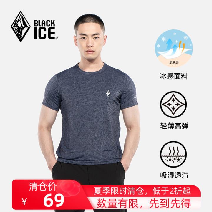黑冰夏季男士运动短袖户外徒步快干T恤跑步健身排汗弹