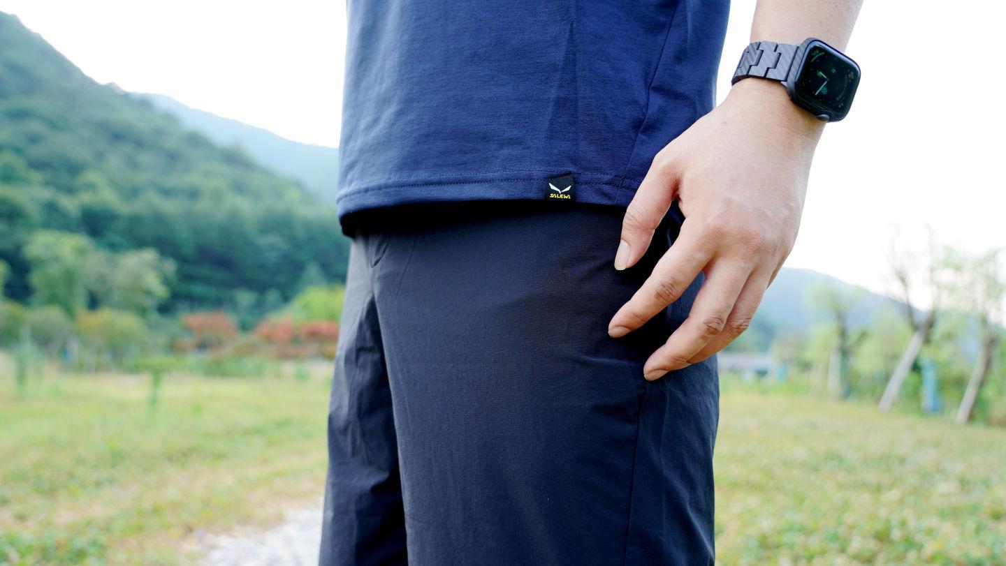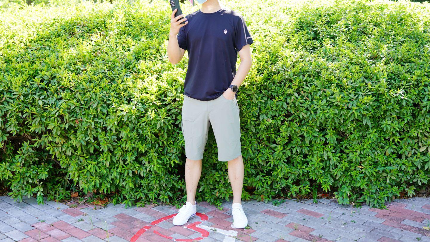 接着聊聊短裤,这是一条登山或者休闲都可以穿着的裤子,采用了东丽的防泼透气面料,和T恤一样,具有透气快干功能。
