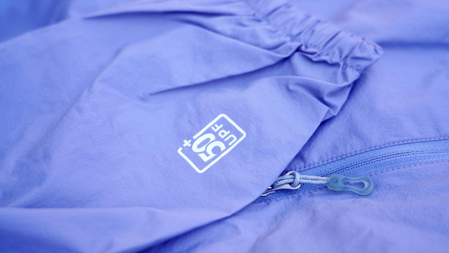 UPF50+的防晒指数标识设计在了袖口,这个标识根据紫外线的强烈程度会呈现出不同的颜色,颜色越紫说明紫外线越强,有意思。