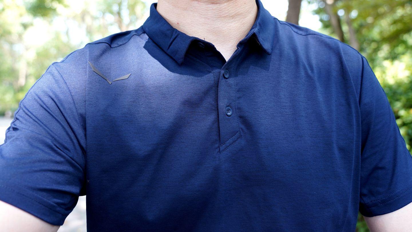 表面看仿佛是一件“正常”的POLO衫,没有什么特别的,但是仔细看肩膀处的细节还是能发现,这是一件户外和室内都适合的衣服,样式可休闲可庄重,面料却可运动可户外,明明有透气快干的能力,却低调到让人以为是商务穿着。