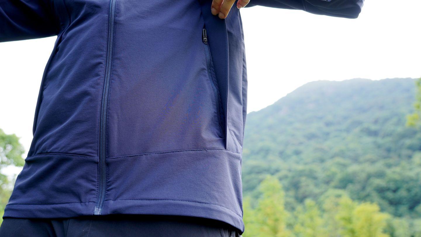 侧面也同样有一个大口袋,只不过两边的插手袋口成了传统的圆形。