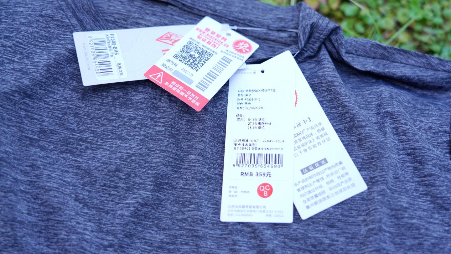 和第一件T一样,颜色,标牌,LOGO都是几乎一样。由于并不是采用的聚酯纤维材料,而是用了锦纶+氨纶+聚酯纤维的材料组成,让这款T的带来了更冰凉的触感,重量上比刚才的T重了17g,这也是轻薄到几乎可以忽略不计的差异。