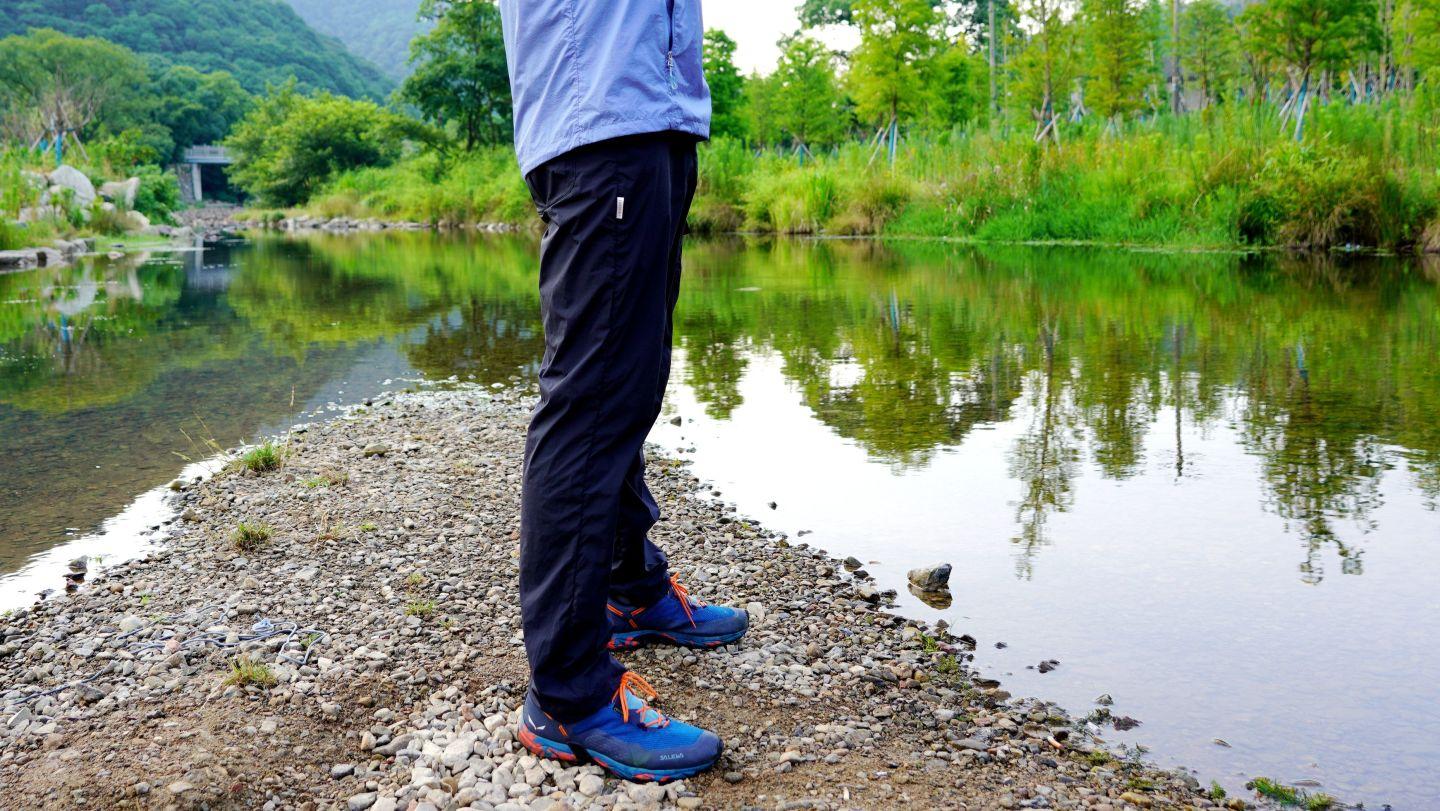 裤型走的是干净利落型路线,轻便贴合,透气快干,表面材质具有一定的抗水性,配合户外服装和鞋子搭配合适不过。我也终于明白小P同学为什么这么认可这裤子,毕竟他是钓鱼佬,初夏穿这个防晒,速干,用来进行钓鱼这种长时间户外运动合适。