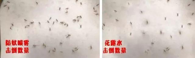 实验很快有了结果,防蚊喷雾瞬间击倒蚊子的数量远远高于花露水击倒的数量。
