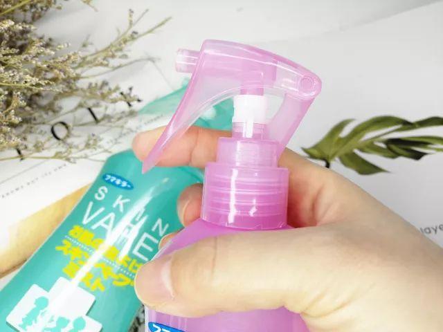 日本产品比较贴心的一点就是在按压出会有小设计,这款喷雾的喷嘴设有一个按扣,使用时将扣子转开,不使用时扣住就按不动了。这样小朋友在家也不会误用,放在包里也不用担心会挤压喷出来。