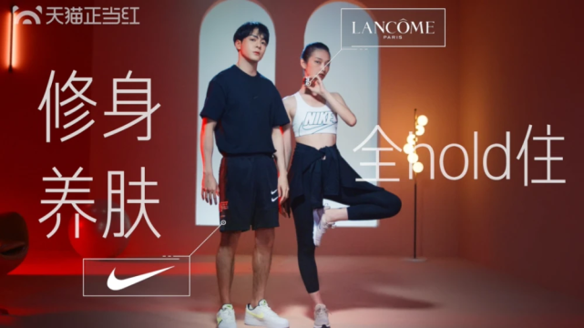 由运动健身衍生而出的美妆领域正在迅猛发展,运动美妆正在实现常态化。根据抖音美妆群体分析报告,在喜好观看美妆视频的人群中有半数为90后偏好运动的人群,当然这部分人群也同样关注运动护肤。此外,“运动+美妆”的巧妙碰撞也为各大品牌提供了更多新的营销玩法。天猫正当红就发起了“运动美颜正当红”活动,定位“既能Hold住瑜伽、慢跑,也能Hold住高颜值运动Look”的女性群体,利用花样繁多的创新玩法,开辟了一个全新的跨品类营销竞技场。