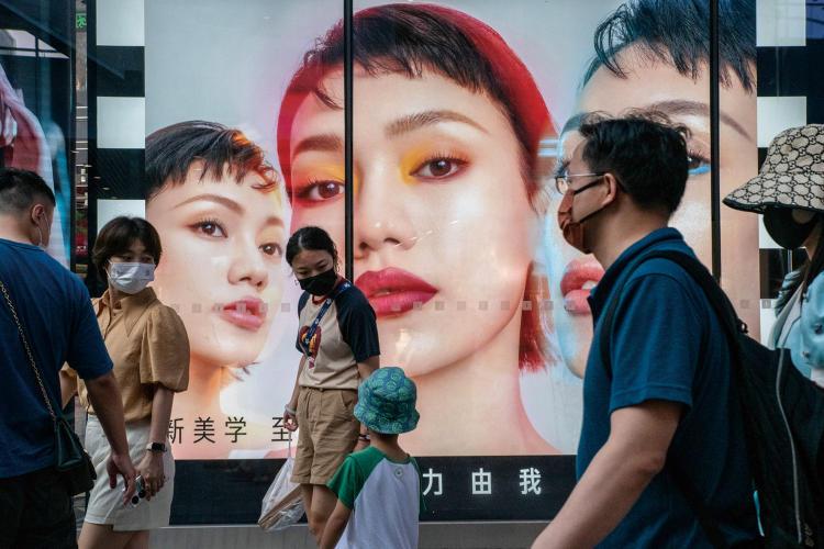 2022年7月5日,北京街头的化妆品广告。/视觉中国
